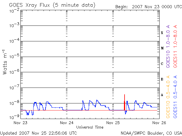 De operationele data in de bovenstaande grafiek werd aangepast om de schaalfactor te verwijderen die werd toegepast door het Space Weather Prediction Center (SWPC). Vanwege de SWPC-schaalfactor in de operationele data werden de zonnevlammen 42% kleiner gerapporteerd dan deze in de wetenschappelijke data. De schaalfactor werd ook verwijderd uit de lijst met zonnevlammen om de werkelijke fysieke eenheden weer te geven.