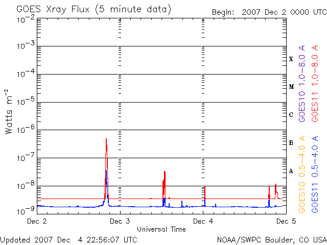 De operationele data in de bovenstaande grafiek werd aangepast om de schaalfactor te verwijderen die werd toegepast door het Space Weather Prediction Center (SWPC). Vanwege de SWPC-schaalfactor in de operationele data werden de zonnevlammen 42% kleiner gerapporteerd dan deze in de wetenschappelijke data. De schaalfactor werd ook verwijderd uit de lijst met zonnevlammen om de werkelijke fysieke eenheden weer te geven.