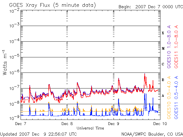 De operationele data in de bovenstaande grafiek werd aangepast om de schaalfactor te verwijderen die werd toegepast door het Space Weather Prediction Center (SWPC). Vanwege de SWPC-schaalfactor in de operationele data werden de zonnevlammen 42% kleiner gerapporteerd dan deze in de wetenschappelijke data. De schaalfactor werd ook verwijderd uit de lijst met zonnevlammen om de werkelijke fysieke eenheden weer te geven.