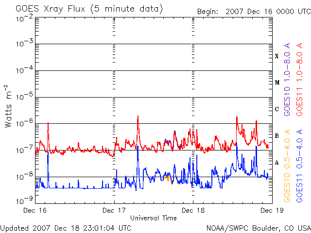 De operationele data in de bovenstaande grafiek werd aangepast om de schaalfactor te verwijderen die werd toegepast door het Space Weather Prediction Center (SWPC). Vanwege de SWPC-schaalfactor in de operationele data werden de zonnevlammen 42% kleiner gerapporteerd dan deze in de wetenschappelijke data. De schaalfactor werd ook verwijderd uit de lijst met zonnevlammen om de werkelijke fysieke eenheden weer te geven.