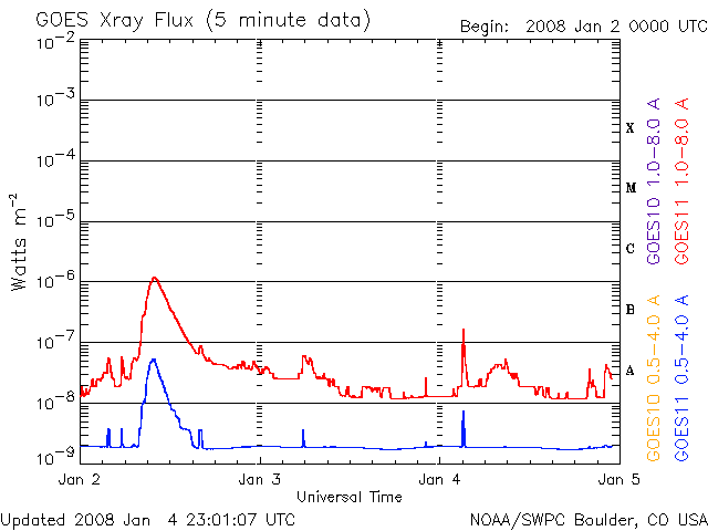 De operationele data in de bovenstaande grafiek werd aangepast om de schaalfactor te verwijderen die werd toegepast door het Space Weather Prediction Center (SWPC). Vanwege de SWPC-schaalfactor in de operationele data werden de zonnevlammen 42% kleiner gerapporteerd dan deze in de wetenschappelijke data. De schaalfactor werd ook verwijderd uit de lijst met zonnevlammen om de werkelijke fysieke eenheden weer te geven.