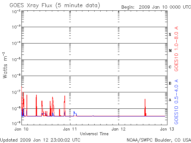 De operationele data in de bovenstaande grafiek werd aangepast om de schaalfactor te verwijderen die werd toegepast door het Space Weather Prediction Center (SWPC). Vanwege de SWPC-schaalfactor in de operationele data werden de zonnevlammen 42% kleiner gerapporteerd dan deze in de wetenschappelijke data. De schaalfactor werd ook verwijderd uit de lijst met zonnevlammen om de werkelijke fysieke eenheden weer te geven.