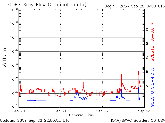 De operationele data in de bovenstaande grafiek werd aangepast om de schaalfactor te verwijderen die werd toegepast door het Space Weather Prediction Center (SWPC). Vanwege de SWPC-schaalfactor in de operationele data werden de zonnevlammen 42% kleiner gerapporteerd dan deze in de wetenschappelijke data. De schaalfactor werd ook verwijderd uit de lijst met zonnevlammen om de werkelijke fysieke eenheden weer te geven.