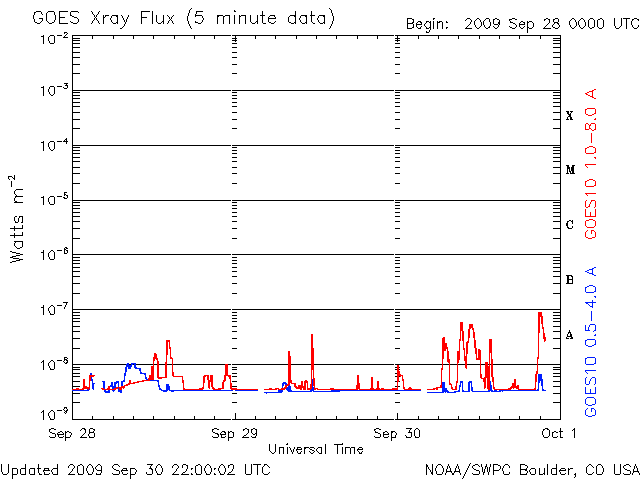 De operationele data in de bovenstaande grafiek werd aangepast om de schaalfactor te verwijderen die werd toegepast door het Space Weather Prediction Center (SWPC). Vanwege de SWPC-schaalfactor in de operationele data werden de zonnevlammen 42% kleiner gerapporteerd dan deze in de wetenschappelijke data. De schaalfactor werd ook verwijderd uit de lijst met zonnevlammen om de werkelijke fysieke eenheden weer te geven.