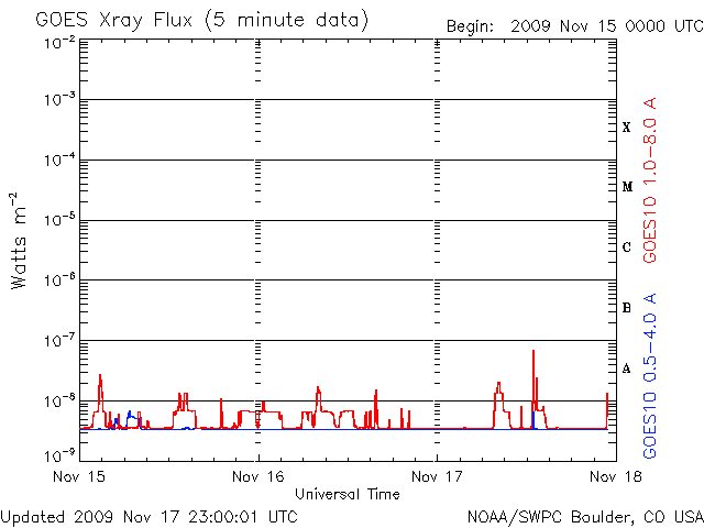 De operationele data in de bovenstaande grafiek werd aangepast om de schaalfactor te verwijderen die werd toegepast door het Space Weather Prediction Center (SWPC). Vanwege de SWPC-schaalfactor in de operationele data werden de zonnevlammen 42% kleiner gerapporteerd dan deze in de wetenschappelijke data. De schaalfactor werd ook verwijderd uit de lijst met zonnevlammen om de werkelijke fysieke eenheden weer te geven.