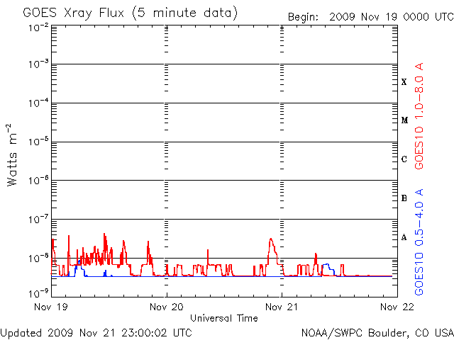 De operationele data in de bovenstaande grafiek werd aangepast om de schaalfactor te verwijderen die werd toegepast door het Space Weather Prediction Center (SWPC). Vanwege de SWPC-schaalfactor in de operationele data werden de zonnevlammen 42% kleiner gerapporteerd dan deze in de wetenschappelijke data. De schaalfactor werd ook verwijderd uit de lijst met zonnevlammen om de werkelijke fysieke eenheden weer te geven.