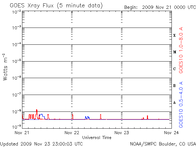 De operationele data in de bovenstaande grafiek werd aangepast om de schaalfactor te verwijderen die werd toegepast door het Space Weather Prediction Center (SWPC). Vanwege de SWPC-schaalfactor in de operationele data werden de zonnevlammen 42% kleiner gerapporteerd dan deze in de wetenschappelijke data. De schaalfactor werd ook verwijderd uit de lijst met zonnevlammen om de werkelijke fysieke eenheden weer te geven.