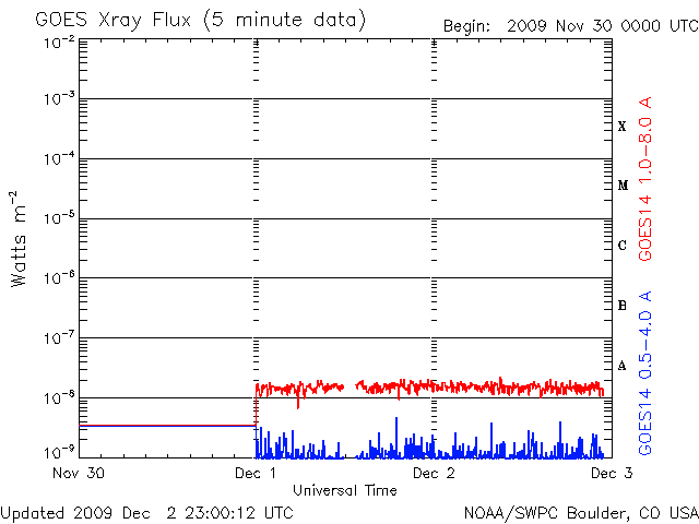 De operationele data in de bovenstaande grafiek werd aangepast om de schaalfactor te verwijderen die werd toegepast door het Space Weather Prediction Center (SWPC). Vanwege de SWPC-schaalfactor in de operationele data werden de zonnevlammen 42% kleiner gerapporteerd dan deze in de wetenschappelijke data. De schaalfactor werd ook verwijderd uit de lijst met zonnevlammen om de werkelijke fysieke eenheden weer te geven.