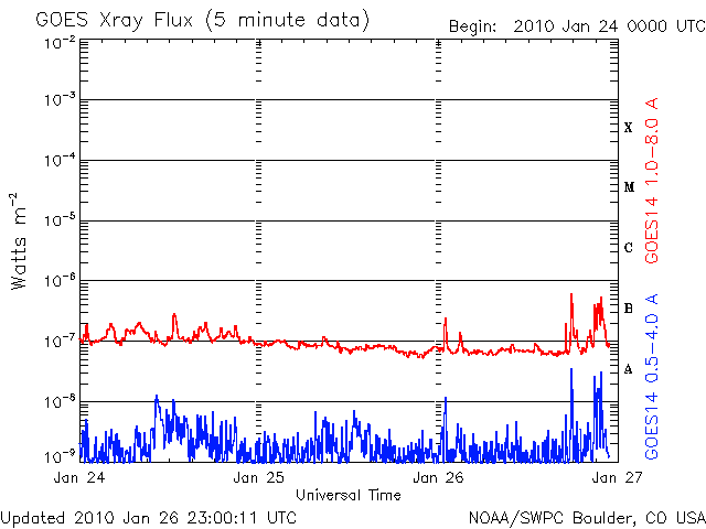 De operationele data in de bovenstaande grafiek werd aangepast om de schaalfactor te verwijderen die werd toegepast door het Space Weather Prediction Center (SWPC). Vanwege de SWPC-schaalfactor in de operationele data werden de zonnevlammen 42% kleiner gerapporteerd dan deze in de wetenschappelijke data. De schaalfactor werd ook verwijderd uit de lijst met zonnevlammen om de werkelijke fysieke eenheden weer te geven.