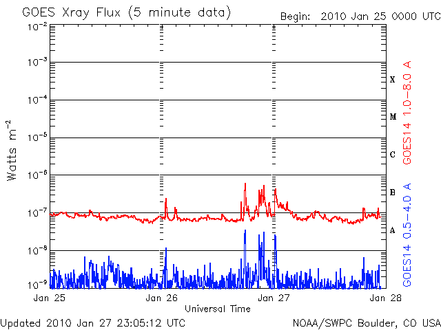 De operationele data in de bovenstaande grafiek werd aangepast om de schaalfactor te verwijderen die werd toegepast door het Space Weather Prediction Center (SWPC). Vanwege de SWPC-schaalfactor in de operationele data werden de zonnevlammen 42% kleiner gerapporteerd dan deze in de wetenschappelijke data. De schaalfactor werd ook verwijderd uit de lijst met zonnevlammen om de werkelijke fysieke eenheden weer te geven.