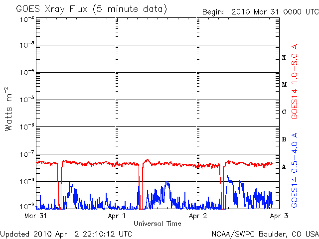 De operationele data in de bovenstaande grafiek werd aangepast om de schaalfactor te verwijderen die werd toegepast door het Space Weather Prediction Center (SWPC). Vanwege de SWPC-schaalfactor in de operationele data werden de zonnevlammen 42% kleiner gerapporteerd dan deze in de wetenschappelijke data. De schaalfactor werd ook verwijderd uit de lijst met zonnevlammen om de werkelijke fysieke eenheden weer te geven.