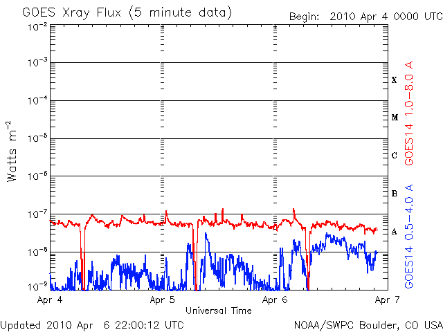 De operationele data in de bovenstaande grafiek werd aangepast om de schaalfactor te verwijderen die werd toegepast door het Space Weather Prediction Center (SWPC). Vanwege de SWPC-schaalfactor in de operationele data werden de zonnevlammen 42% kleiner gerapporteerd dan deze in de wetenschappelijke data. De schaalfactor werd ook verwijderd uit de lijst met zonnevlammen om de werkelijke fysieke eenheden weer te geven.