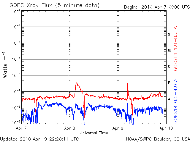 De operationele data in de bovenstaande grafiek werd aangepast om de schaalfactor te verwijderen die werd toegepast door het Space Weather Prediction Center (SWPC). Vanwege de SWPC-schaalfactor in de operationele data werden de zonnevlammen 42% kleiner gerapporteerd dan deze in de wetenschappelijke data. De schaalfactor werd ook verwijderd uit de lijst met zonnevlammen om de werkelijke fysieke eenheden weer te geven.