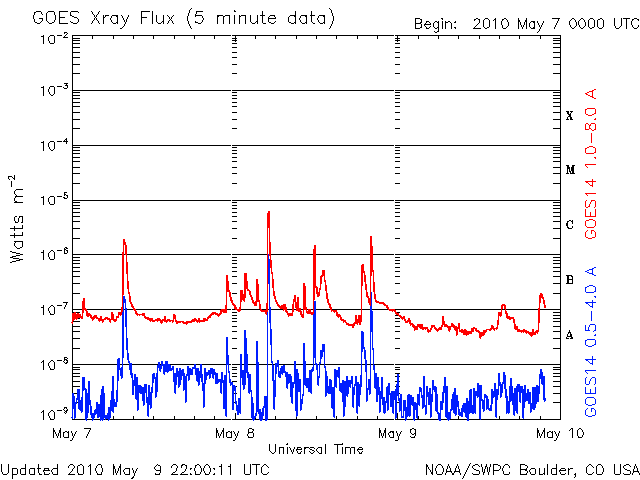 De operationele data in de bovenstaande grafiek werd aangepast om de schaalfactor te verwijderen die werd toegepast door het Space Weather Prediction Center (SWPC). Vanwege de SWPC-schaalfactor in de operationele data werden de zonnevlammen 42% kleiner gerapporteerd dan deze in de wetenschappelijke data. De schaalfactor werd ook verwijderd uit de lijst met zonnevlammen om de werkelijke fysieke eenheden weer te geven.