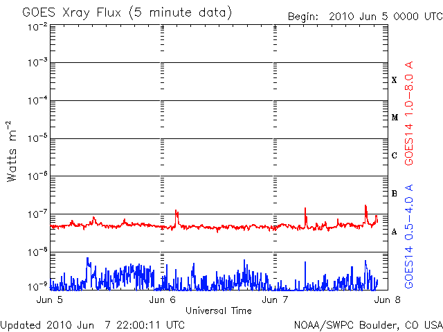 De operationele data in de bovenstaande grafiek werd aangepast om de schaalfactor te verwijderen die werd toegepast door het Space Weather Prediction Center (SWPC). Vanwege de SWPC-schaalfactor in de operationele data werden de zonnevlammen 42% kleiner gerapporteerd dan deze in de wetenschappelijke data. De schaalfactor werd ook verwijderd uit de lijst met zonnevlammen om de werkelijke fysieke eenheden weer te geven.