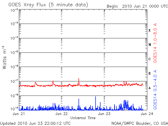 De operationele data in de bovenstaande grafiek werd aangepast om de schaalfactor te verwijderen die werd toegepast door het Space Weather Prediction Center (SWPC). Vanwege de SWPC-schaalfactor in de operationele data werden de zonnevlammen 42% kleiner gerapporteerd dan deze in de wetenschappelijke data. De schaalfactor werd ook verwijderd uit de lijst met zonnevlammen om de werkelijke fysieke eenheden weer te geven.