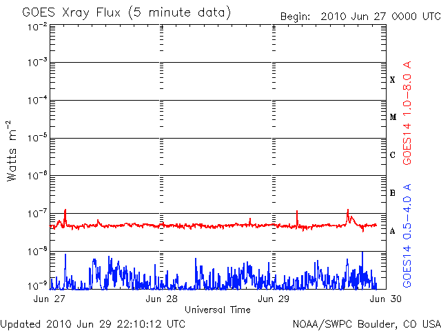 De operationele data in de bovenstaande grafiek werd aangepast om de schaalfactor te verwijderen die werd toegepast door het Space Weather Prediction Center (SWPC). Vanwege de SWPC-schaalfactor in de operationele data werden de zonnevlammen 42% kleiner gerapporteerd dan deze in de wetenschappelijke data. De schaalfactor werd ook verwijderd uit de lijst met zonnevlammen om de werkelijke fysieke eenheden weer te geven.