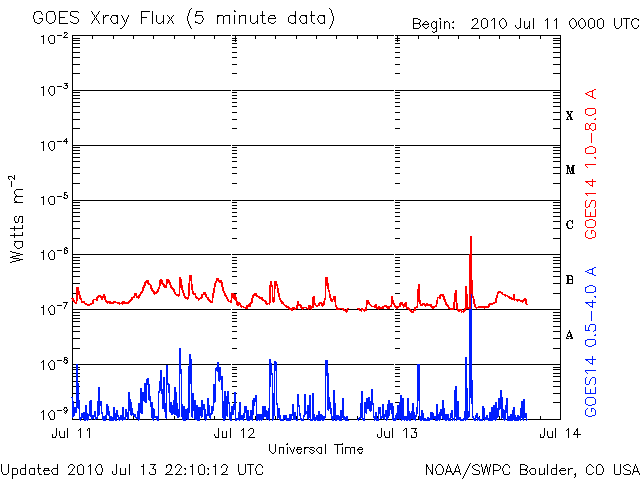 De operationele data in de bovenstaande grafiek werd aangepast om de schaalfactor te verwijderen die werd toegepast door het Space Weather Prediction Center (SWPC). Vanwege de SWPC-schaalfactor in de operationele data werden de zonnevlammen 42% kleiner gerapporteerd dan deze in de wetenschappelijke data. De schaalfactor werd ook verwijderd uit de lijst met zonnevlammen om de werkelijke fysieke eenheden weer te geven.