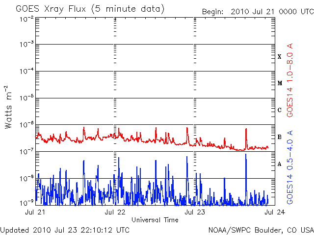 De operationele data in de bovenstaande grafiek werd aangepast om de schaalfactor te verwijderen die werd toegepast door het Space Weather Prediction Center (SWPC). Vanwege de SWPC-schaalfactor in de operationele data werden de zonnevlammen 42% kleiner gerapporteerd dan deze in de wetenschappelijke data. De schaalfactor werd ook verwijderd uit de lijst met zonnevlammen om de werkelijke fysieke eenheden weer te geven.