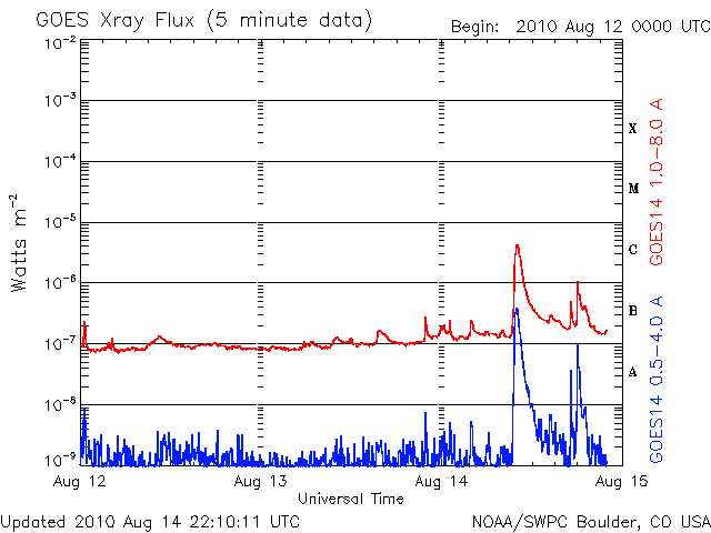 De operationele data in de bovenstaande grafiek werd aangepast om de schaalfactor te verwijderen die werd toegepast door het Space Weather Prediction Center (SWPC). Vanwege de SWPC-schaalfactor in de operationele data werden de zonnevlammen 42% kleiner gerapporteerd dan deze in de wetenschappelijke data. De schaalfactor werd ook verwijderd uit de lijst met zonnevlammen om de werkelijke fysieke eenheden weer te geven.