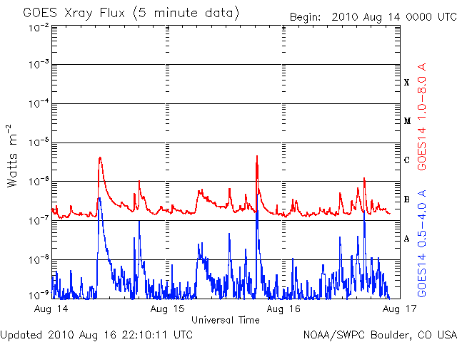 De operationele data in de bovenstaande grafiek werd aangepast om de schaalfactor te verwijderen die werd toegepast door het Space Weather Prediction Center (SWPC). Vanwege de SWPC-schaalfactor in de operationele data werden de zonnevlammen 42% kleiner gerapporteerd dan deze in de wetenschappelijke data. De schaalfactor werd ook verwijderd uit de lijst met zonnevlammen om de werkelijke fysieke eenheden weer te geven.