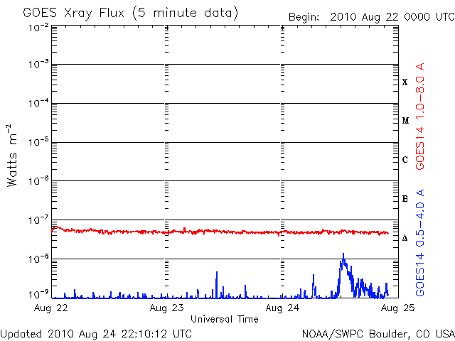 De operationele data in de bovenstaande grafiek werd aangepast om de schaalfactor te verwijderen die werd toegepast door het Space Weather Prediction Center (SWPC). Vanwege de SWPC-schaalfactor in de operationele data werden de zonnevlammen 42% kleiner gerapporteerd dan deze in de wetenschappelijke data. De schaalfactor werd ook verwijderd uit de lijst met zonnevlammen om de werkelijke fysieke eenheden weer te geven.