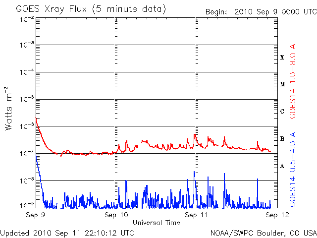 De operationele data in de bovenstaande grafiek werd aangepast om de schaalfactor te verwijderen die werd toegepast door het Space Weather Prediction Center (SWPC). Vanwege de SWPC-schaalfactor in de operationele data werden de zonnevlammen 42% kleiner gerapporteerd dan deze in de wetenschappelijke data. De schaalfactor werd ook verwijderd uit de lijst met zonnevlammen om de werkelijke fysieke eenheden weer te geven.
