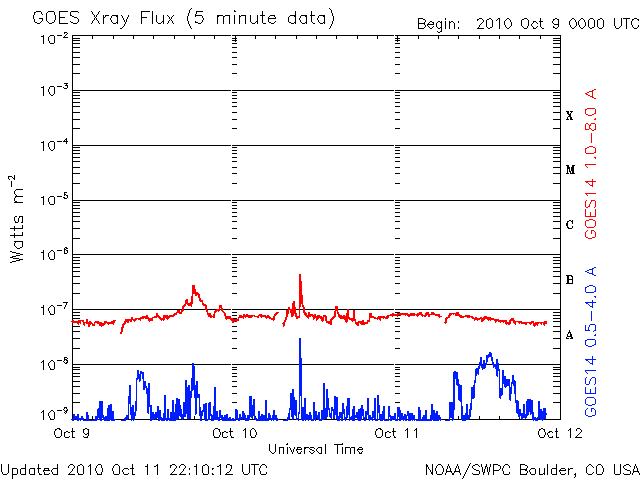 De operationele data in de bovenstaande grafiek werd aangepast om de schaalfactor te verwijderen die werd toegepast door het Space Weather Prediction Center (SWPC). Vanwege de SWPC-schaalfactor in de operationele data werden de zonnevlammen 42% kleiner gerapporteerd dan deze in de wetenschappelijke data. De schaalfactor werd ook verwijderd uit de lijst met zonnevlammen om de werkelijke fysieke eenheden weer te geven.