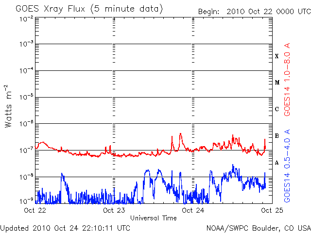 De operationele data in de bovenstaande grafiek werd aangepast om de schaalfactor te verwijderen die werd toegepast door het Space Weather Prediction Center (SWPC). Vanwege de SWPC-schaalfactor in de operationele data werden de zonnevlammen 42% kleiner gerapporteerd dan deze in de wetenschappelijke data. De schaalfactor werd ook verwijderd uit de lijst met zonnevlammen om de werkelijke fysieke eenheden weer te geven.