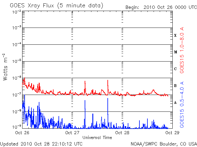 De operationele data in de bovenstaande grafiek werd aangepast om de schaalfactor te verwijderen die werd toegepast door het Space Weather Prediction Center (SWPC). Vanwege de SWPC-schaalfactor in de operationele data werden de zonnevlammen 42% kleiner gerapporteerd dan deze in de wetenschappelijke data. De schaalfactor werd ook verwijderd uit de lijst met zonnevlammen om de werkelijke fysieke eenheden weer te geven.