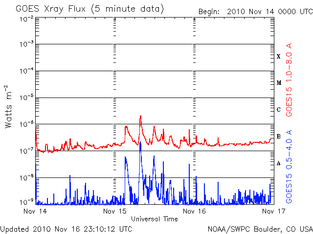De operationele data in de bovenstaande grafiek werd aangepast om de schaalfactor te verwijderen die werd toegepast door het Space Weather Prediction Center (SWPC). Vanwege de SWPC-schaalfactor in de operationele data werden de zonnevlammen 42% kleiner gerapporteerd dan deze in de wetenschappelijke data. De schaalfactor werd ook verwijderd uit de lijst met zonnevlammen om de werkelijke fysieke eenheden weer te geven.