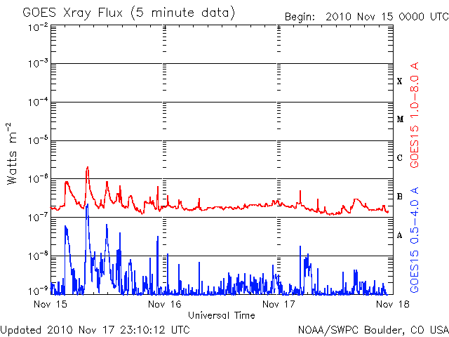 De operationele data in de bovenstaande grafiek werd aangepast om de schaalfactor te verwijderen die werd toegepast door het Space Weather Prediction Center (SWPC). Vanwege de SWPC-schaalfactor in de operationele data werden de zonnevlammen 42% kleiner gerapporteerd dan deze in de wetenschappelijke data. De schaalfactor werd ook verwijderd uit de lijst met zonnevlammen om de werkelijke fysieke eenheden weer te geven.