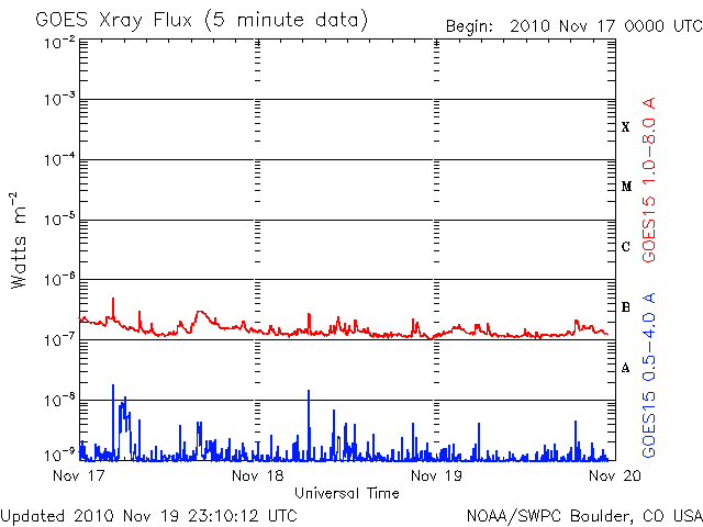 De operationele data in de bovenstaande grafiek werd aangepast om de schaalfactor te verwijderen die werd toegepast door het Space Weather Prediction Center (SWPC). Vanwege de SWPC-schaalfactor in de operationele data werden de zonnevlammen 42% kleiner gerapporteerd dan deze in de wetenschappelijke data. De schaalfactor werd ook verwijderd uit de lijst met zonnevlammen om de werkelijke fysieke eenheden weer te geven.