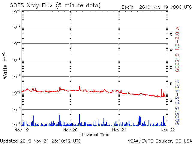 De operationele data in de bovenstaande grafiek werd aangepast om de schaalfactor te verwijderen die werd toegepast door het Space Weather Prediction Center (SWPC). Vanwege de SWPC-schaalfactor in de operationele data werden de zonnevlammen 42% kleiner gerapporteerd dan deze in de wetenschappelijke data. De schaalfactor werd ook verwijderd uit de lijst met zonnevlammen om de werkelijke fysieke eenheden weer te geven.