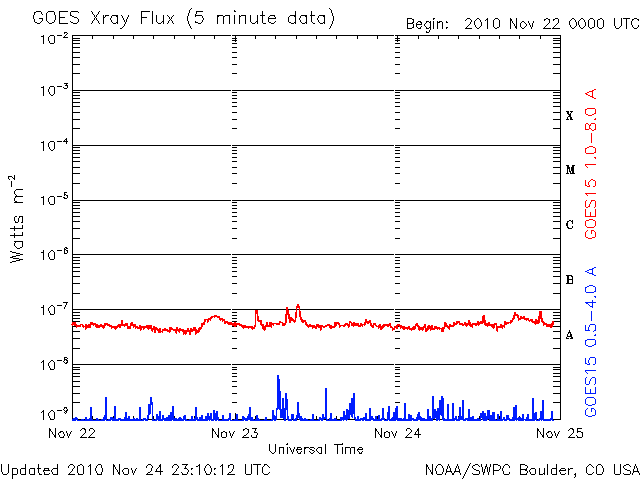 De operationele data in de bovenstaande grafiek werd aangepast om de schaalfactor te verwijderen die werd toegepast door het Space Weather Prediction Center (SWPC). Vanwege de SWPC-schaalfactor in de operationele data werden de zonnevlammen 42% kleiner gerapporteerd dan deze in de wetenschappelijke data. De schaalfactor werd ook verwijderd uit de lijst met zonnevlammen om de werkelijke fysieke eenheden weer te geven.