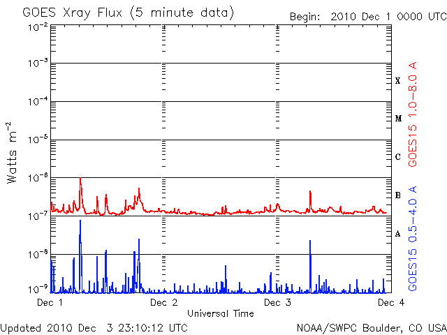 De operationele data in de bovenstaande grafiek werd aangepast om de schaalfactor te verwijderen die werd toegepast door het Space Weather Prediction Center (SWPC). Vanwege de SWPC-schaalfactor in de operationele data werden de zonnevlammen 42% kleiner gerapporteerd dan deze in de wetenschappelijke data. De schaalfactor werd ook verwijderd uit de lijst met zonnevlammen om de werkelijke fysieke eenheden weer te geven.