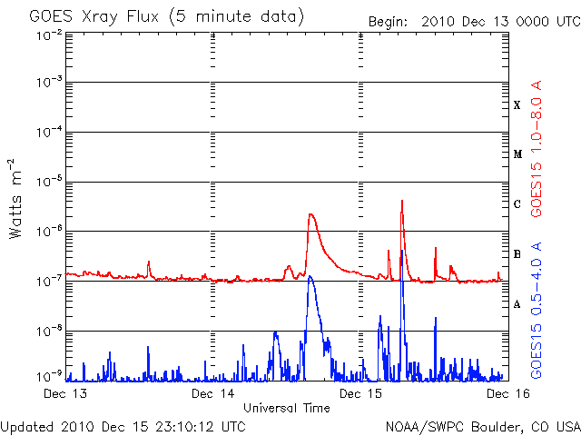 De operationele data in de bovenstaande grafiek werd aangepast om de schaalfactor te verwijderen die werd toegepast door het Space Weather Prediction Center (SWPC). Vanwege de SWPC-schaalfactor in de operationele data werden de zonnevlammen 42% kleiner gerapporteerd dan deze in de wetenschappelijke data. De schaalfactor werd ook verwijderd uit de lijst met zonnevlammen om de werkelijke fysieke eenheden weer te geven.