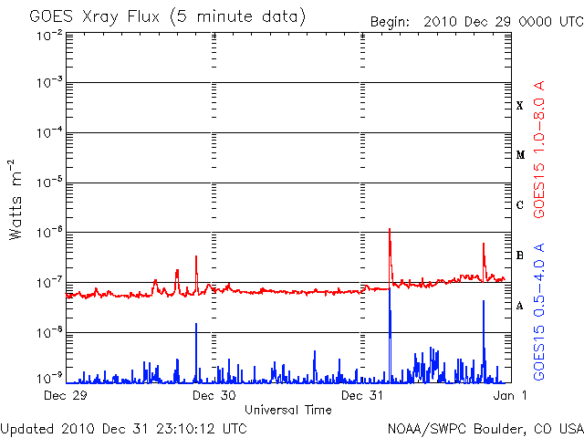 De operationele data in de bovenstaande grafiek werd aangepast om de schaalfactor te verwijderen die werd toegepast door het Space Weather Prediction Center (SWPC). Vanwege de SWPC-schaalfactor in de operationele data werden de zonnevlammen 42% kleiner gerapporteerd dan deze in de wetenschappelijke data. De schaalfactor werd ook verwijderd uit de lijst met zonnevlammen om de werkelijke fysieke eenheden weer te geven.