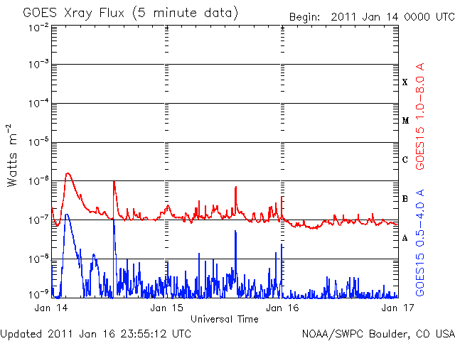 De operationele data in de bovenstaande grafiek werd aangepast om de schaalfactor te verwijderen die werd toegepast door het Space Weather Prediction Center (SWPC). Vanwege de SWPC-schaalfactor in de operationele data werden de zonnevlammen 42% kleiner gerapporteerd dan deze in de wetenschappelijke data. De schaalfactor werd ook verwijderd uit de lijst met zonnevlammen om de werkelijke fysieke eenheden weer te geven.