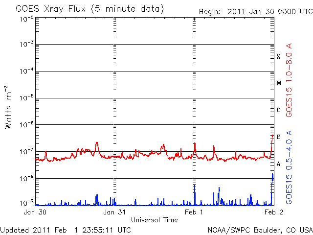 De operationele data in de bovenstaande grafiek werd aangepast om de schaalfactor te verwijderen die werd toegepast door het Space Weather Prediction Center (SWPC). Vanwege de SWPC-schaalfactor in de operationele data werden de zonnevlammen 42% kleiner gerapporteerd dan deze in de wetenschappelijke data. De schaalfactor werd ook verwijderd uit de lijst met zonnevlammen om de werkelijke fysieke eenheden weer te geven.