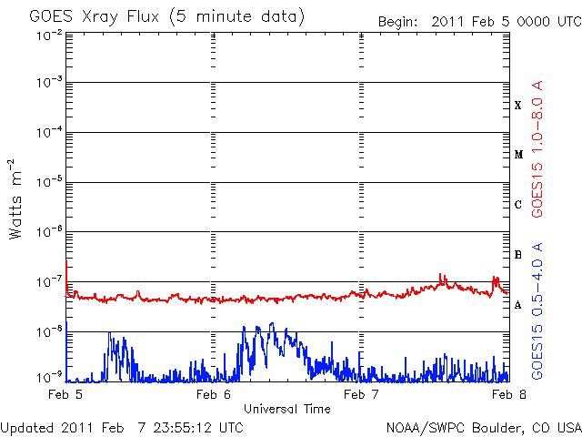De operationele data in de bovenstaande grafiek werd aangepast om de schaalfactor te verwijderen die werd toegepast door het Space Weather Prediction Center (SWPC). Vanwege de SWPC-schaalfactor in de operationele data werden de zonnevlammen 42% kleiner gerapporteerd dan deze in de wetenschappelijke data. De schaalfactor werd ook verwijderd uit de lijst met zonnevlammen om de werkelijke fysieke eenheden weer te geven.