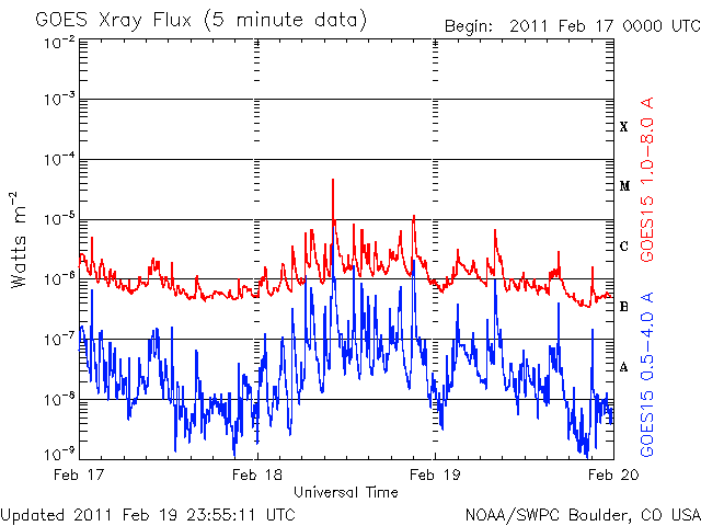 De operationele data in de bovenstaande grafiek werd aangepast om de schaalfactor te verwijderen die werd toegepast door het Space Weather Prediction Center (SWPC). Vanwege de SWPC-schaalfactor in de operationele data werden de zonnevlammen 42% kleiner gerapporteerd dan deze in de wetenschappelijke data. De schaalfactor werd ook verwijderd uit de lijst met zonnevlammen om de werkelijke fysieke eenheden weer te geven.