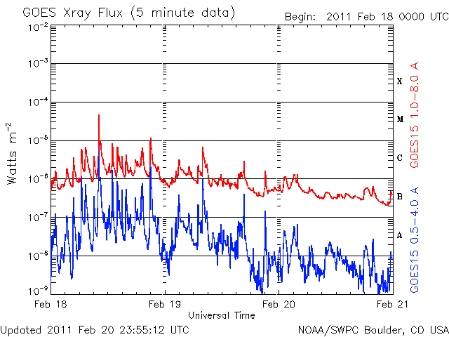 De operationele data in de bovenstaande grafiek werd aangepast om de schaalfactor te verwijderen die werd toegepast door het Space Weather Prediction Center (SWPC). Vanwege de SWPC-schaalfactor in de operationele data werden de zonnevlammen 42% kleiner gerapporteerd dan deze in de wetenschappelijke data. De schaalfactor werd ook verwijderd uit de lijst met zonnevlammen om de werkelijke fysieke eenheden weer te geven.