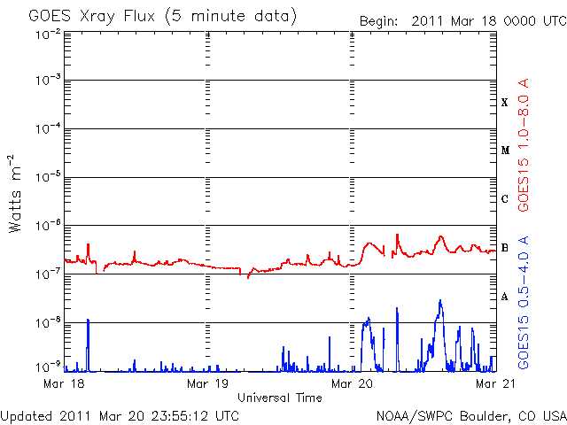De operationele data in de bovenstaande grafiek werd aangepast om de schaalfactor te verwijderen die werd toegepast door het Space Weather Prediction Center (SWPC). Vanwege de SWPC-schaalfactor in de operationele data werden de zonnevlammen 42% kleiner gerapporteerd dan deze in de wetenschappelijke data. De schaalfactor werd ook verwijderd uit de lijst met zonnevlammen om de werkelijke fysieke eenheden weer te geven.
