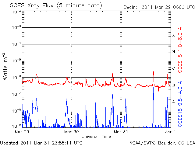 De operationele data in de bovenstaande grafiek werd aangepast om de schaalfactor te verwijderen die werd toegepast door het Space Weather Prediction Center (SWPC). Vanwege de SWPC-schaalfactor in de operationele data werden de zonnevlammen 42% kleiner gerapporteerd dan deze in de wetenschappelijke data. De schaalfactor werd ook verwijderd uit de lijst met zonnevlammen om de werkelijke fysieke eenheden weer te geven.