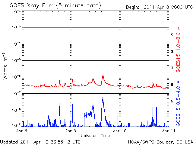 De operationele data in de bovenstaande grafiek werd aangepast om de schaalfactor te verwijderen die werd toegepast door het Space Weather Prediction Center (SWPC). Vanwege de SWPC-schaalfactor in de operationele data werden de zonnevlammen 42% kleiner gerapporteerd dan deze in de wetenschappelijke data. De schaalfactor werd ook verwijderd uit de lijst met zonnevlammen om de werkelijke fysieke eenheden weer te geven.