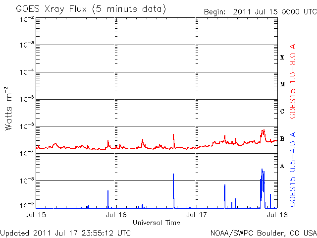 De operationele data in de bovenstaande grafiek werd aangepast om de schaalfactor te verwijderen die werd toegepast door het Space Weather Prediction Center (SWPC). Vanwege de SWPC-schaalfactor in de operationele data werden de zonnevlammen 42% kleiner gerapporteerd dan deze in de wetenschappelijke data. De schaalfactor werd ook verwijderd uit de lijst met zonnevlammen om de werkelijke fysieke eenheden weer te geven.