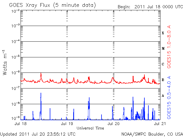 De operationele data in de bovenstaande grafiek werd aangepast om de schaalfactor te verwijderen die werd toegepast door het Space Weather Prediction Center (SWPC). Vanwege de SWPC-schaalfactor in de operationele data werden de zonnevlammen 42% kleiner gerapporteerd dan deze in de wetenschappelijke data. De schaalfactor werd ook verwijderd uit de lijst met zonnevlammen om de werkelijke fysieke eenheden weer te geven.