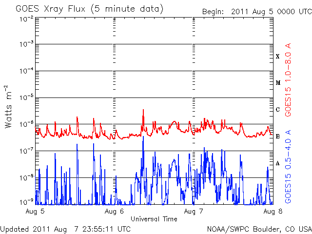 De operationele data in de bovenstaande grafiek werd aangepast om de schaalfactor te verwijderen die werd toegepast door het Space Weather Prediction Center (SWPC). Vanwege de SWPC-schaalfactor in de operationele data werden de zonnevlammen 42% kleiner gerapporteerd dan deze in de wetenschappelijke data. De schaalfactor werd ook verwijderd uit de lijst met zonnevlammen om de werkelijke fysieke eenheden weer te geven.