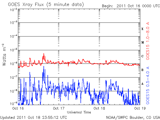 De operationele data in de bovenstaande grafiek werd aangepast om de schaalfactor te verwijderen die werd toegepast door het Space Weather Prediction Center (SWPC). Vanwege de SWPC-schaalfactor in de operationele data werden de zonnevlammen 42% kleiner gerapporteerd dan deze in de wetenschappelijke data. De schaalfactor werd ook verwijderd uit de lijst met zonnevlammen om de werkelijke fysieke eenheden weer te geven.